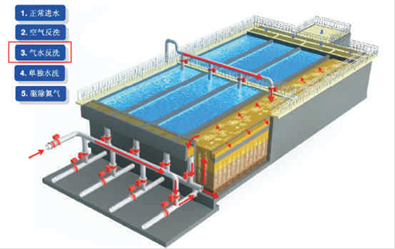 ◆濾池反沖洗:采用氣水聯(lián)合沖洗的方式;